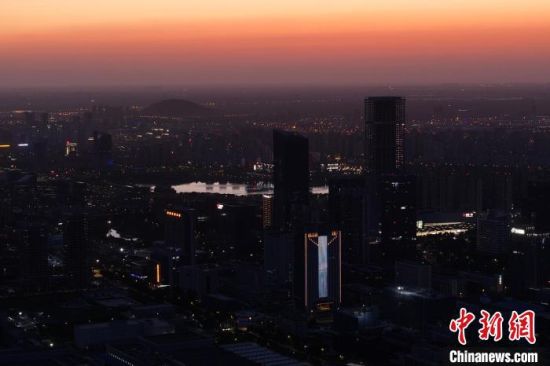 安徽合肥:日落時現火燒云 晚霞映紅天空